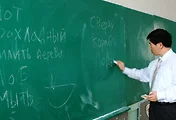 예빠토리야 제1학교 교정에서 필자를 기다리는 고려인 학생들......오른쪽 이타냐, 김타냐, 올랴, 최디마